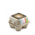 Pack of 4 Livornese Bianca variety eggs. True gourmet products that come from virtuous farms, and are obtained from hens raised on the ground and outdoors in large spaces, fed exclusively with certified organic grains. An ethical choice shared with deep conviction.