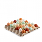 Pack of 120 high quality variety eggs, from free range hens with organic grain. The different color of the "Garda Egg" eggs is given by the 8 special breeds of laying hens that produce very tasty and wonderfully colored eggs.